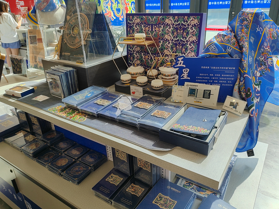 天文星象、吉祥文字、瑞兽纹样……这些源自“五星出东方利中国”锦护臂的文化元素,正源源不断为“五星”系列文创设计输送着灵感。