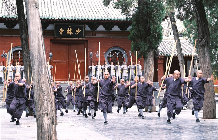 【嵩山少林景区】少林武僧表演少林功夫。