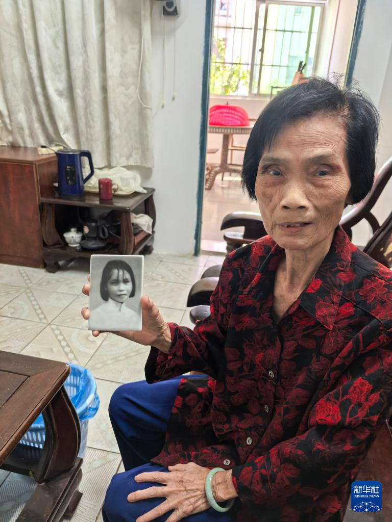 许如梅的女儿符如来展示许如梅拍摄于中学时期的照片(6月19日摄)。新华社记者 夏天 摄