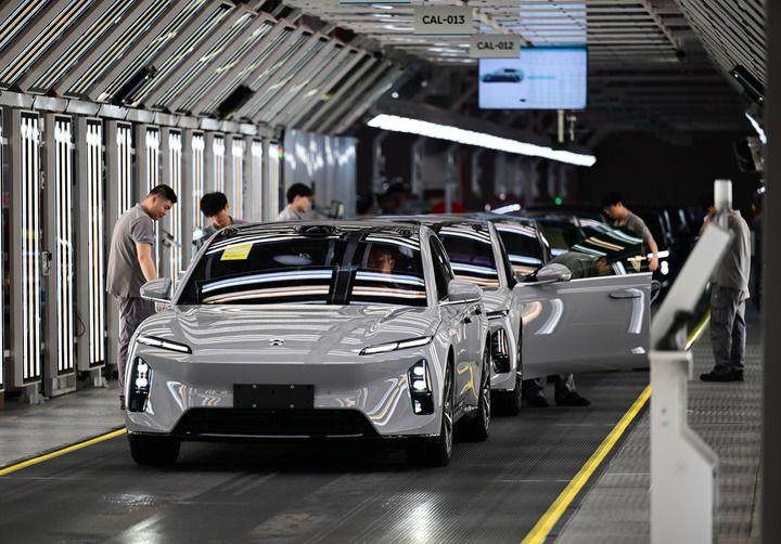 2025年7月1日在合肥市新桥智能电动汽车产业园蔚来第二工厂拍摄的新能源汽车生产线。新华社记者 周牧 摄